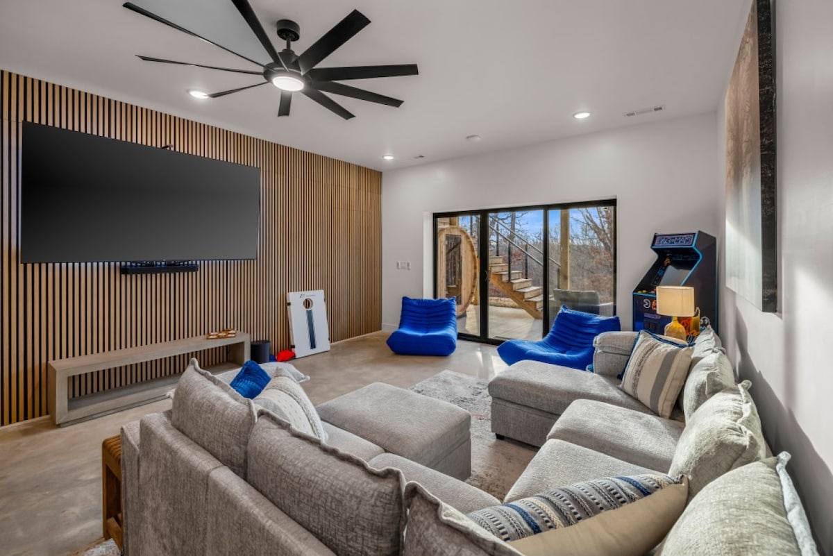 Discover Free Time Chalet, a brand-new 2026 Modern luxury retreat on a rare double lot directly on the Tunnel Vision Trail and minutes from iconic Oz Trails and Bentonville. This modern 3BR, 3.5BA home offers designer finishes, a chef’s kitchen, spacious living, and serene indoor-outdoor spaces. Perfect for riders, families, and adventure seekers wanting upscale comfort, premium trail access, and unforgettable mountain experiences. New 6-person Hot tub and 2-4 person Sauna