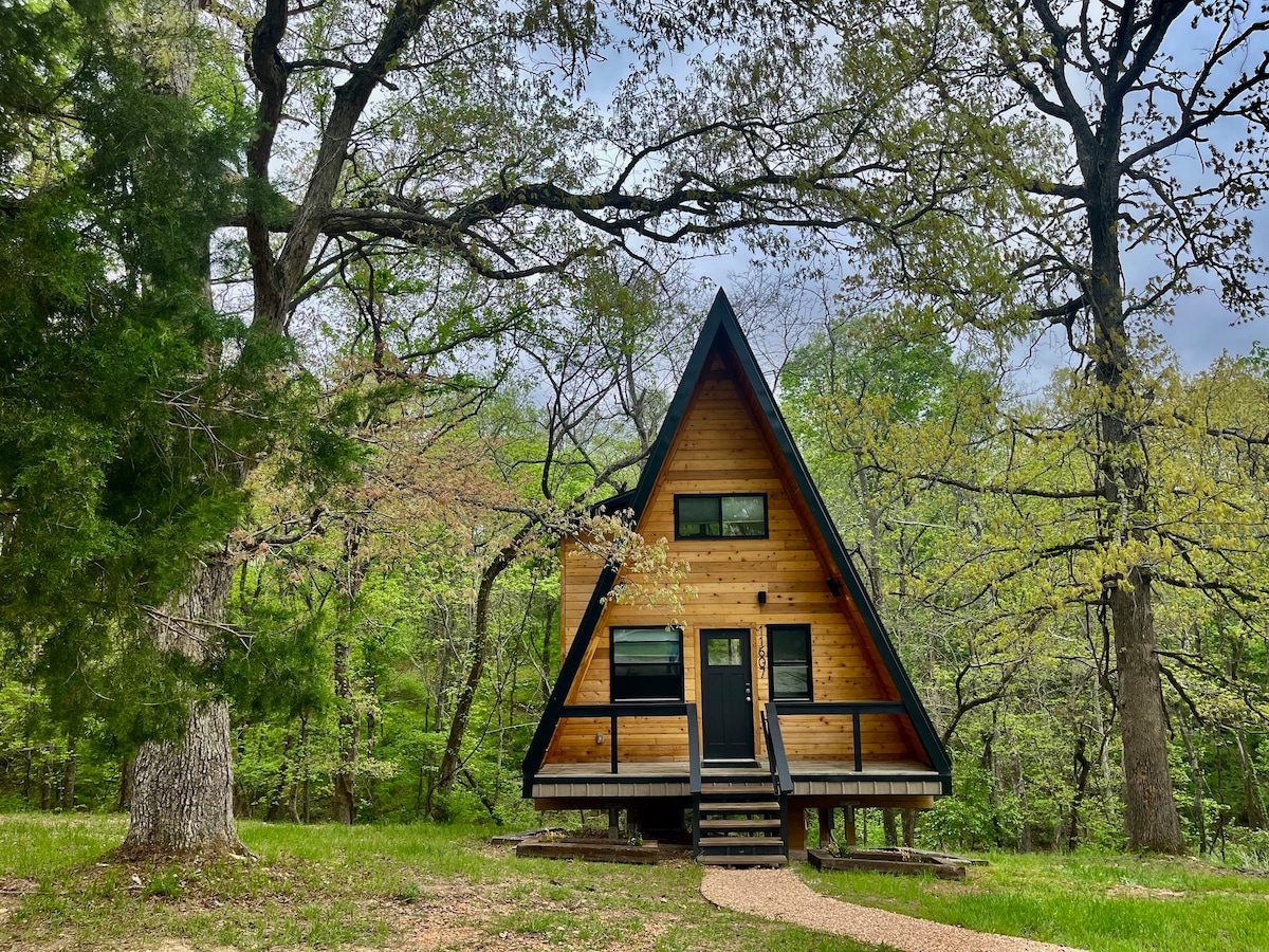 Welcome to Pedal and Perch, a custom-designed and built accessory dwelling cabin just minutes from downtown Bentonville, AR, Walmart HQ, and miles of incredible mountain biking. Enjoy a serene setting that tucks you among the trees and makes you feel like you are staying in your own treehouse. The cabin features a custom kitchen, one bathroom, a queen bed in the loft, a pullout sofa on the primary floor, and your very own outdoor bathtub looking in to the valley below.