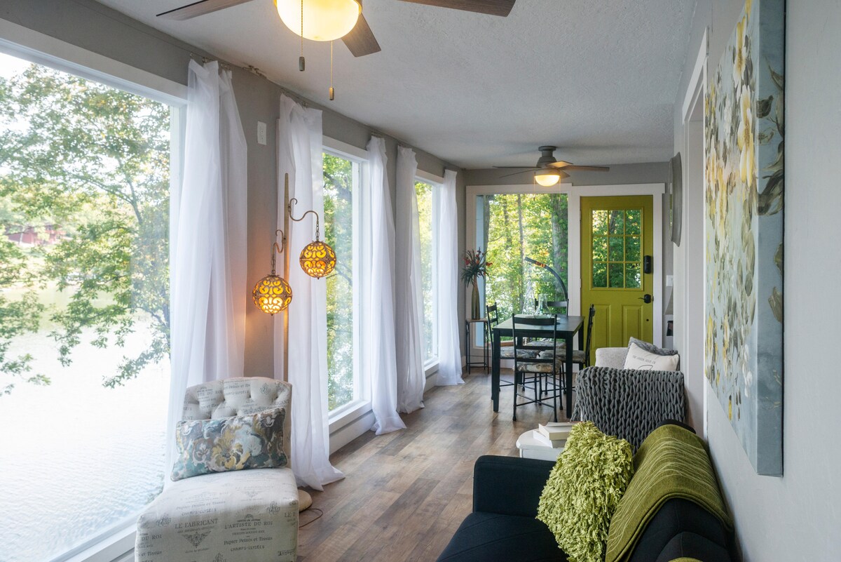 The Treehouse Bungalow was personally renovated and designed by your hosts, Steve and M over the last year. All of the spaces are brand new and exude comfort & peace. From the cozy living room with electric fire place to the spacious deck facing the woods. You will find several, separate areas to make your own. We encourage you to take a break in the soaker tub or grab a book and lounge in the king size bed master. The bike trails, golf, and lakes all around. Come visit NWA and be our guest!