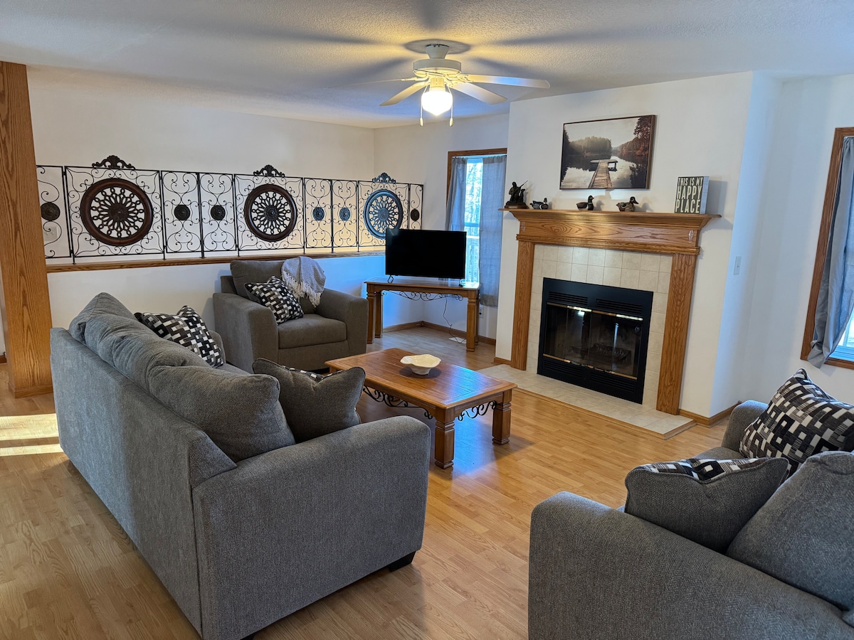 Unwind and kick back for some relaxation at our family friendly cabin! Paved roads allow for easy access, with a marina, hiking trails, and historic Warsaw nearby. Enjoy the large wrap around deck and comfortable outdoor seating. View stunning sunsets at dusk and a blanket of stars in the night sky. Our small lake community is a great place for hiking, bicycling, and bird watching with several trails that lead to the lake.