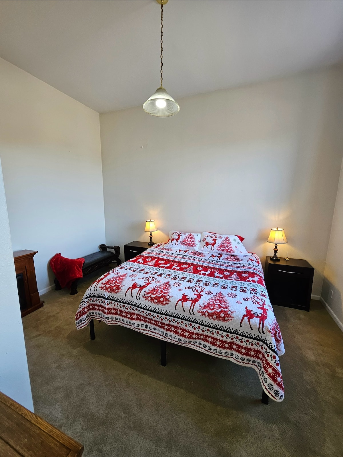 This quiet attached room is located on a dead end street close to OSU. The gas fireplace gives this large, one room, one bathroom space a cozy feel. The separate entrance and free parking add to the privacy and convenience. The many windows face a large private backyard that has a park like feel. The patio and attached yard is only available for use by guests through prior arrangements with owner. The oversized couch is big enough for two to sleep on.
