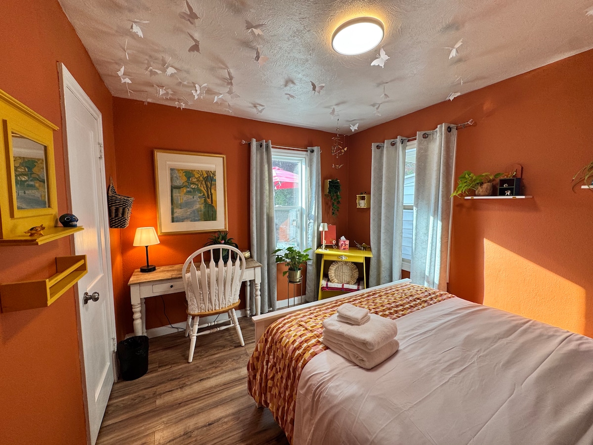 Discover this vibrant, eclectic, stylish two-bedroom apartment in the heart of Corvallis! Just steps from Osborne Aquatic Center and Linus Pauling Middle School, it features a prime location, spacious bedrooms with a king and queen bed, a fully equipped kitchen, in-unit washer/dryer, off-street parking, a sit-stand desk, air conditioning, & more. Super fast WiFi, and endless entertainment with a TV offering cable, Hulu, and Netflix. Your perfect, convenient, and comfortable Corvallis awaits you!