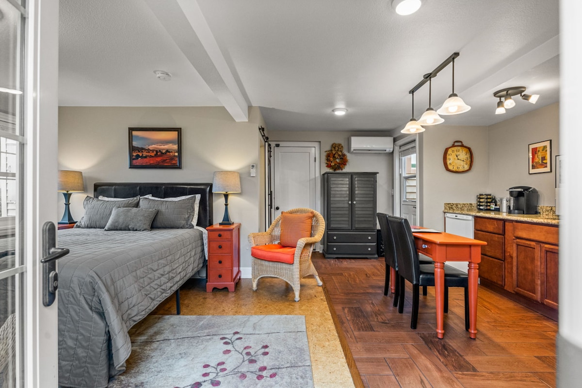Welcome to your ideal Corvallis retreat, perfect for OSU enthusiasts! Just 2.5 blocks from Reser Stadium, this second-floor apartment offers privacy & comfort in a peaceful, owner-occupied neighborhood. Enjoy natural light, hardwood floors, a newly renovated bathroom & kitchenette, a large-screen TV, lightning-fast WiFi, and air conditioning. Off-street parking for two cars is included (limited on game days). Whether for a game or a visit, this is your perfect home away from home! Pets welcome.
