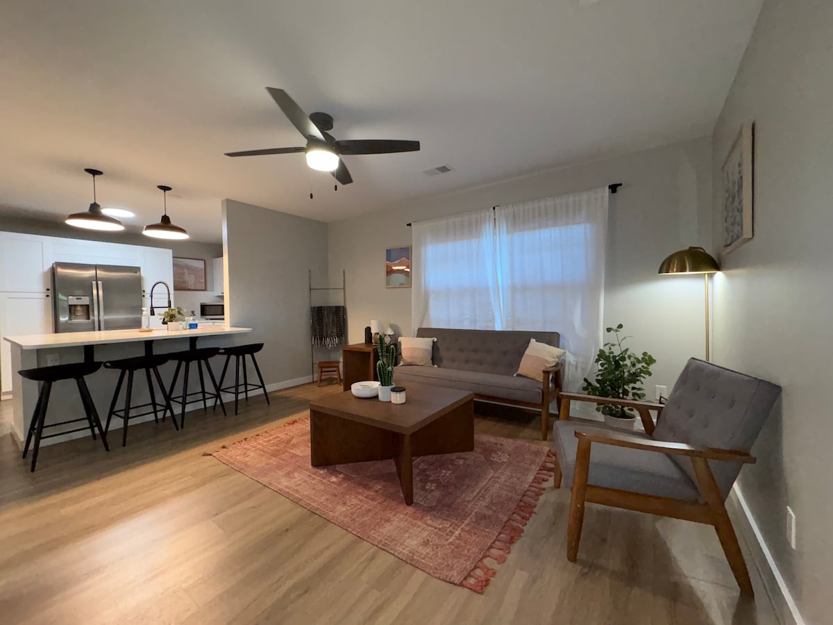 You'll feel right at home in our upscale one-bedroom apartment that is nestled in the best neighborhood in downtown Bentonville. "Peddler’s Place" is just .6 mile from the downtown square, leaving you walking distance from local shops and restaurants, and a short bike ride to the trail heads. We are also located just 1.7 miles away from the new Walmart Campus. Stay in the center of it all, while enjoying luxury bedding, modern fixtures, and a fully equipped kitchen.