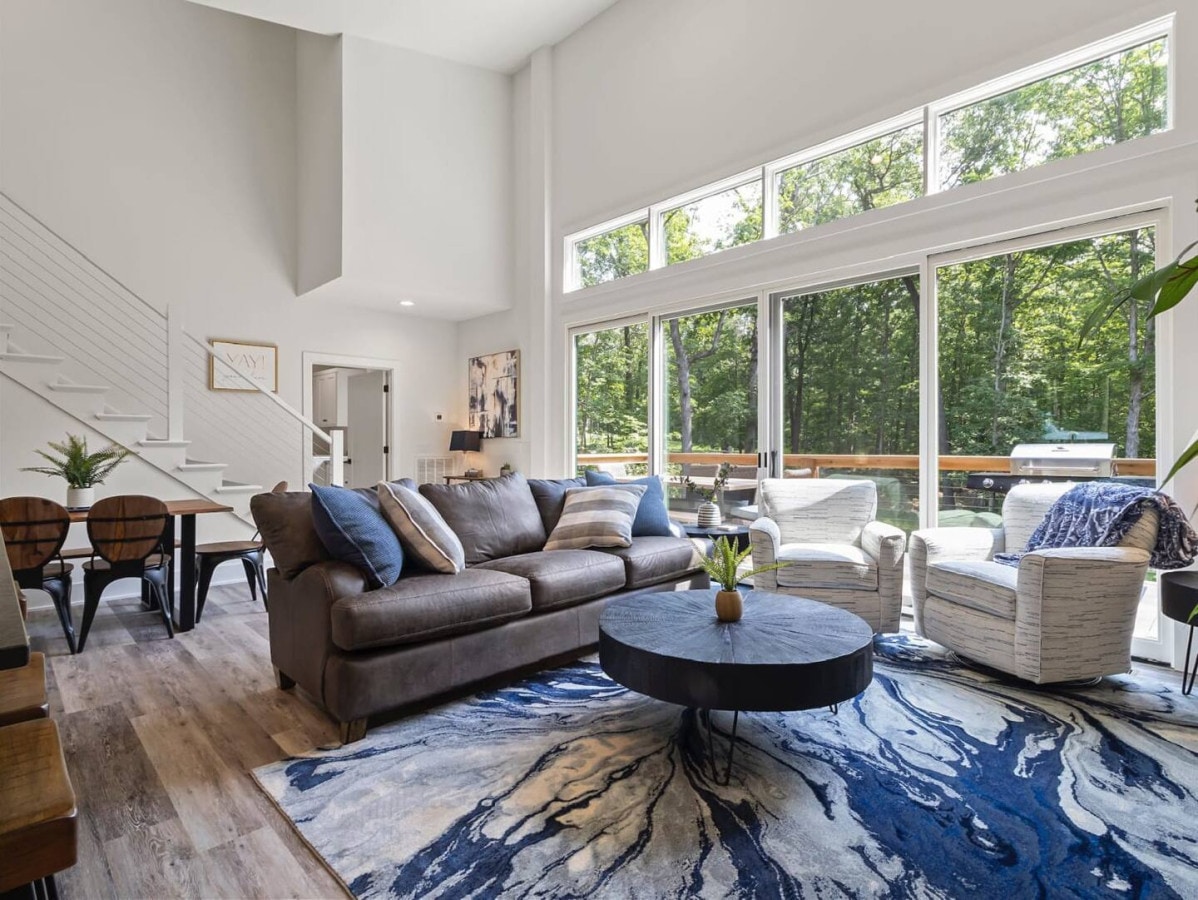 This fully stocked home welcomes you into the beautiful wooded views for ultimate peace and relaxation. There is a surprise waiting for you in every corner, from the modern yet rustic décor to the amazing deck which nestles beautifully into the trees just like a tree house. If you're feeling adventurous, a private yet steep trail will lead you to your own private dock where you can enjoy amazing views of a calm and quiet lake which you will almost always have to yourself.