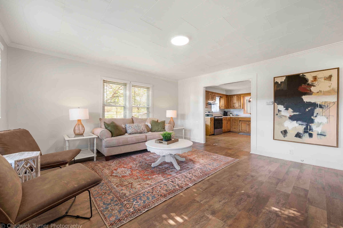 A newly renovated property curated by professional designers. This 2,000 sq ft home is in an excellent location and perfect for all occasions. Loaded with amenities and near all of the best attractions in Northwest Arkansas. Bentonville's premier museums, bike trails, restaurants, music venues, and parks are all nearby. -Bike Trails 1 block (Slaughter Pen, Park Springs) -Crystal Bridges 4 min -Amazeum 4 min -Bentonville Square 4 min -Momentary 7 min -Arkansas Music Pavillion ~12 min