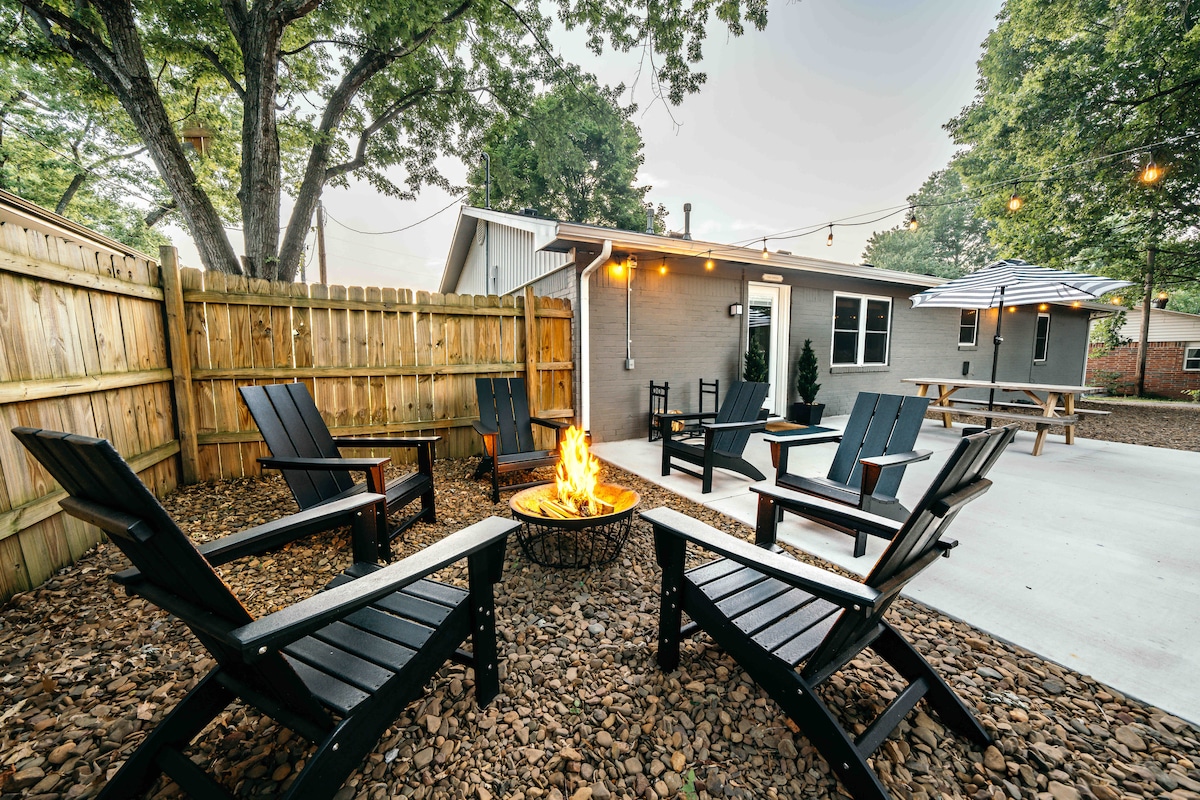 Enjoy a stylish experience at this centrally-located place near the best trails (Coler and Slaughter pen), Bentonville square, Walmart home office, the 5&10 Walmart museum, and Crystal Bridges. Enjoy a quite relaxing vacation near restaurants, coffee shops, bars, and boutiques or have an active experience in the biking capital of the world. This house has a fully equipped kitchen, living room space with pullout couch, 2 bed and 2 full baths, bike storage, and a lovely patio with a fire pit.