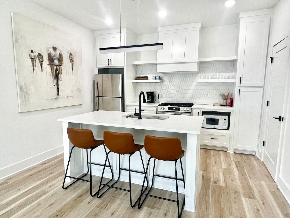 You'll feel right at home in our upscale one-bedroom apartment that is nestled in the best neighborhood in downtown Bentonville. "Peddler’s Place" is just .6 mile from the downtown square, leaving you walking distance from local shops and restaurants, and a short bike ride to the trail heads. We are also located just 1.7 miles away from the new Walmart Campus. Stay in the center of it all, while enjoying luxury bedding, modern fixtures, and a fully equipped kitchen.