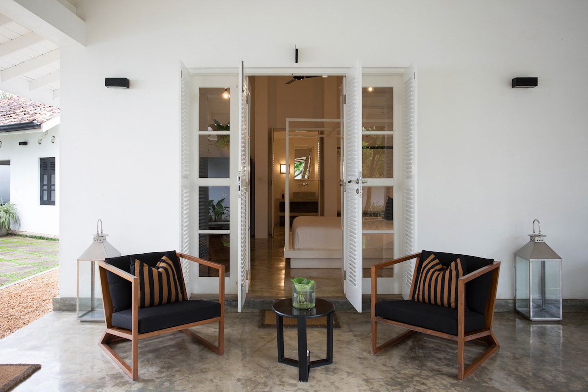 Escape to our tranquil designer room Ja Kotuwa, where you can wake up to breathtaking lake views and be on the beach within minutes. This stylish retreat offers the perfect blend of modern luxury and serene natural beauty. Experience a discreet haven of peace and tranquility, designed entirely with privacy and sanctuary in mind.