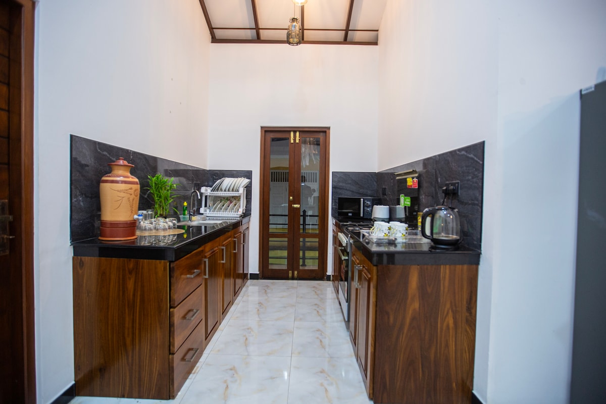 Stylish King Room w/ Balcony, Kitchenette & Nespresso | In Kabalana 🛏️ Room Features king-sized bed Option to add a cozy wooden extra bed (ideal for a child or additional guest) Private en-suite bathroom with hot water Air conditioning Indoor seating area with chairs and a table for lounging or working Private balcony overlooking the garden – perfect for morning coffee or evening breeze Nespresso machine for your daily caffeine fix