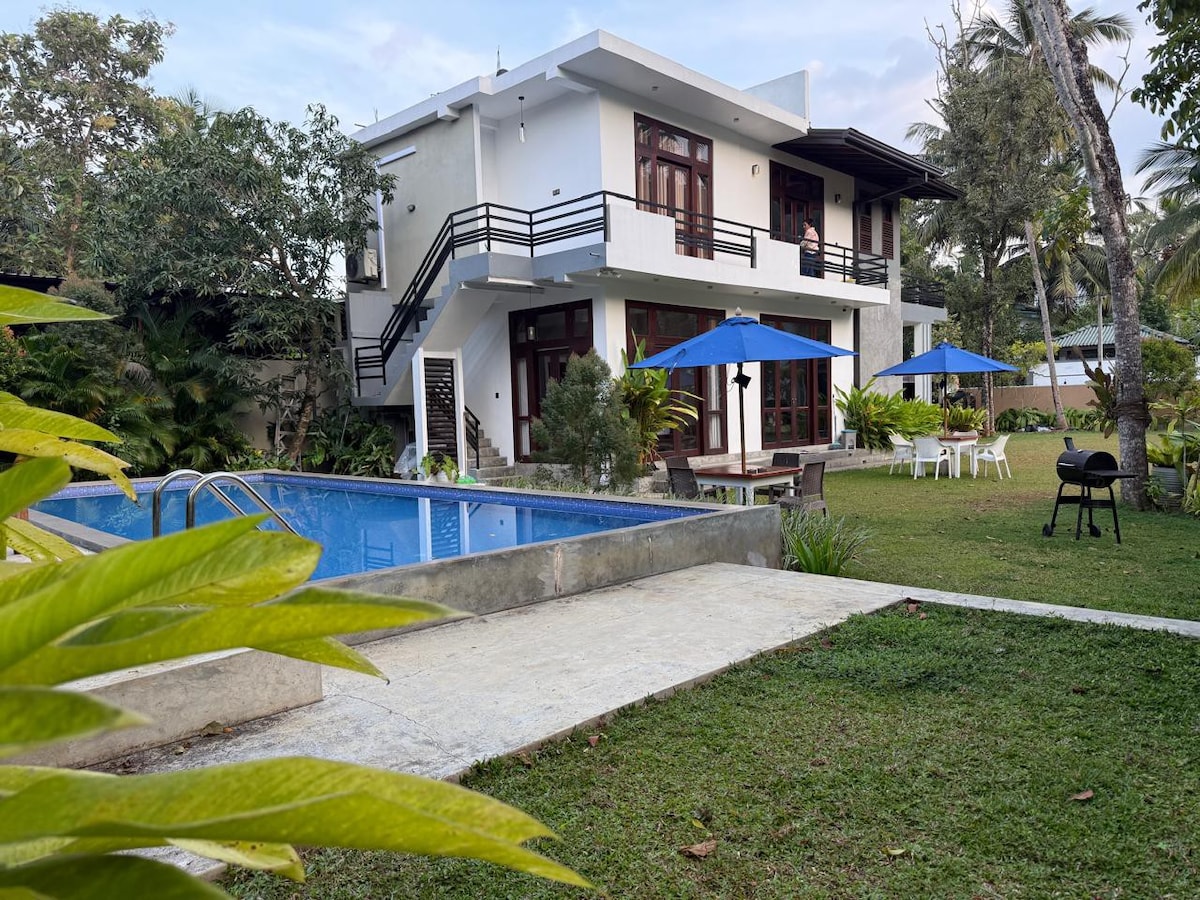 Tourist board and Safe and Secure certification for covid-19. Sitiuated 150m from the ocean in a serene and private area. We provide AC, Hot Water, Pantry, Gas, BBQ, Washing Machine, Fridge, Private Pool & jacuzzi, Air Port Pickup & Drop will be charged @ cheap rate . (Note : you can use Garden & entire upstair). 6km to Bentota / Madu River. 45 min to Hikkaduwa, Galle Fort & Unawatuna,Water sports, turtle farms etc are close. Breakfast not provided unless especially requested ($5each).