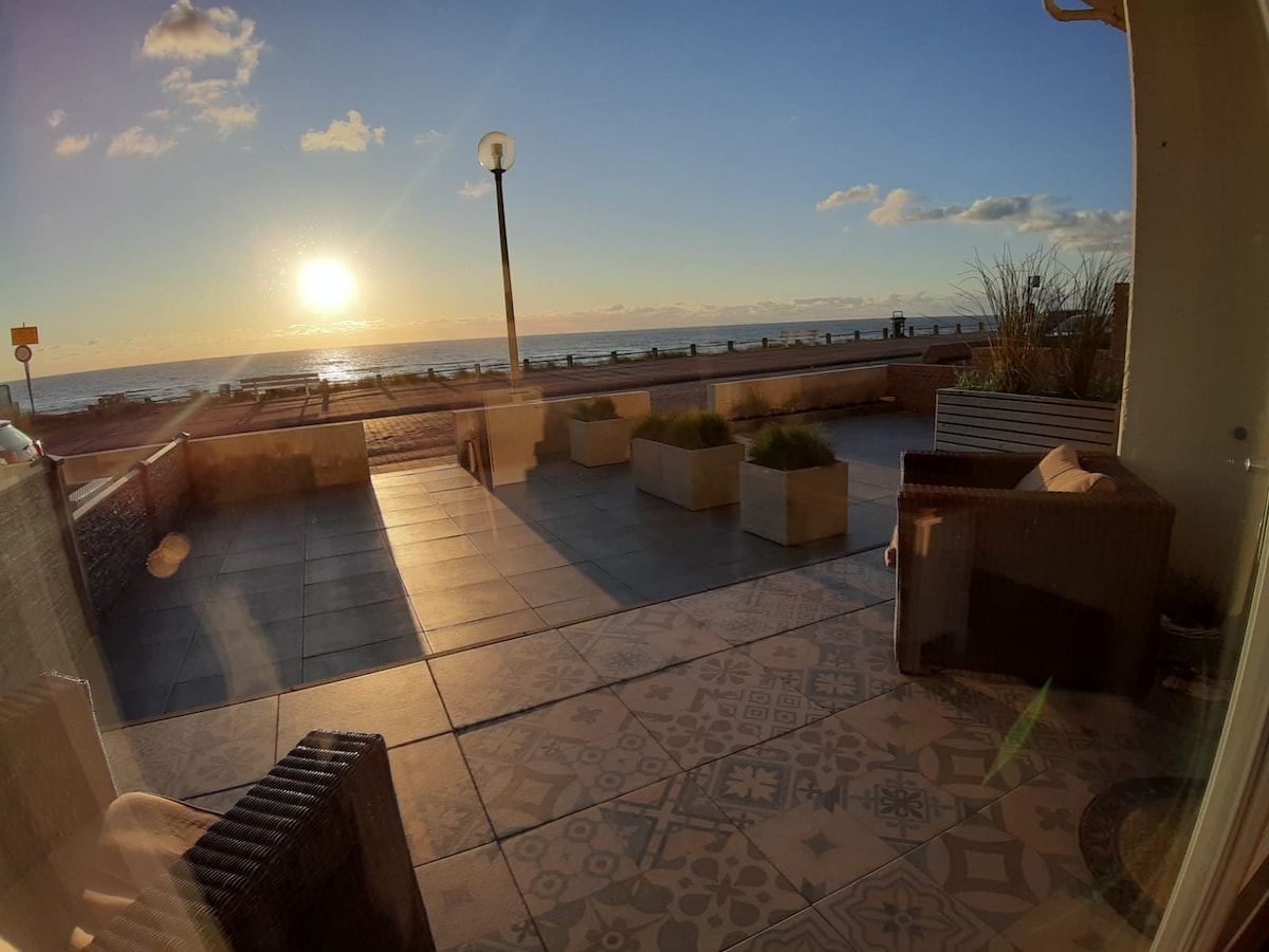The apt. (40m2) is located right in front of the beach and next to the dunes. From your appartment you have a breathtaking view over the sea. It will comfortably fits 2 and is completely new, finished in June 2021. Cozy living room with TV, fully equipped kitchen, comfortable king size bed, perfect WIFI and nice bathroom. You have a private parking spot right next to the apt, as well as a private terrace with dining table and comfy beach chairs. Your dog is very welcome, we allow only 1 dog.