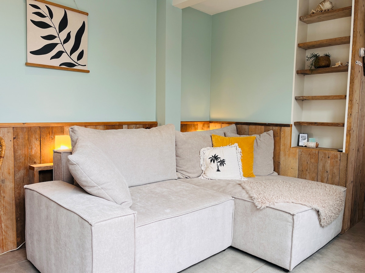 Welcome to this comfortable apartment with its own entrance. Fully furnished living room with open kitchen. Bedroom 2 beds in single or double arrangement, washing machine and dryer, double TV with Netflix. Practical, heated bathroom with shower, toilet and sink. Furnished patio. Free parking space 7 minutes walking distance. Near the dunes 80 meters, the beach 600 meters and the city center 300 m. Supermarket nearby. Children and animals are welcome.