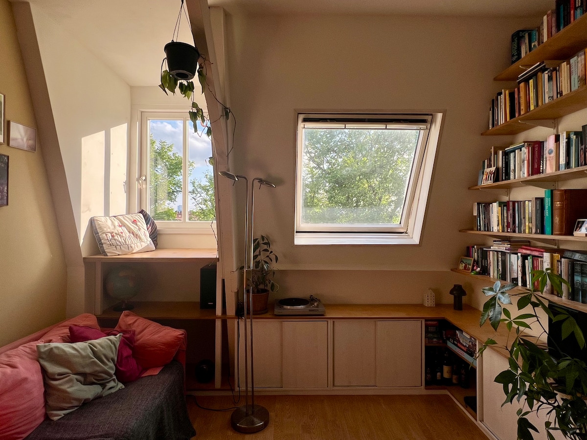Our sunny garden chalet is freely situated in our 400 spuare metre-large garden behind the house. The chalet has sliding doors to the garden, a pull out sofa bed (double), an open kitchen, underfloor heating and a wood stove. Enjoy the peace on your own sunny terrace among the flowers and plants! Located in the heart of the flower bulb area near the coast, within 7 minutes walking distance to the train station.