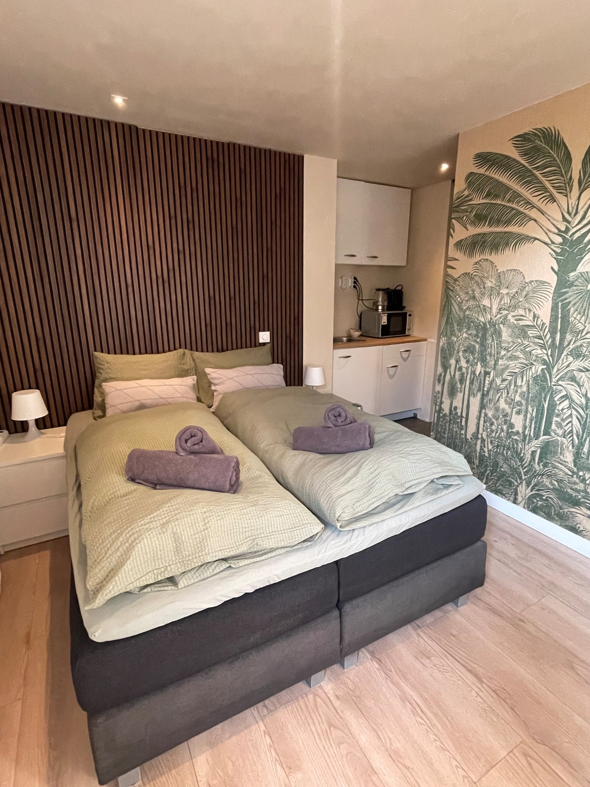 Suite-Suite is een vrijstaand, trendy en luxe privé gastenverblijf met gratis parkeergelegenheid op eigen terrein, besloten terras met overdekte patio, gelegen op slechts 5 minuten loopafstand van strand, duinen en centrum. Suite-Suite is dé ultieme plek om heerlijk tot rust te komen. Vloerverwarming en airconditioning zorgen ervoor dat het in elk jaargetijde aangenaam verblijven is. De fraaie cement gestuukte vloer, bank èn het Suite-Suite droombed maken dit verblijf tot een unieke beleving ♡