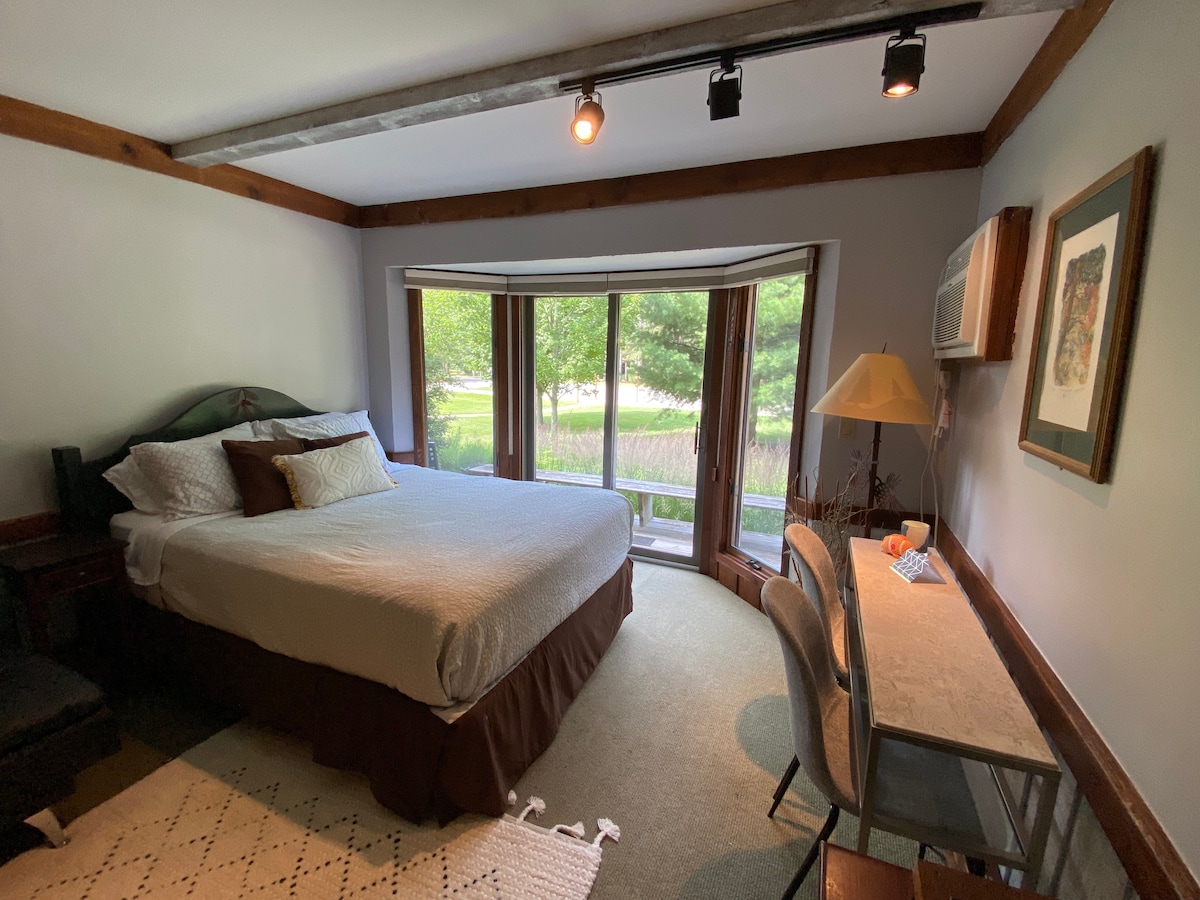 Easy location to find as we are right on Frankfort Hwy. 3 miles from downtown Frankfort and Lake Michigan, only a 8 minute walk from Crystal Lake. Enjoy bicycle riding we are less than a mile from the paved bike path/rails to trails, 15 miles from Crystal Mnt. Entering your cabin you will enjoy a new memory foam, queen-sized bed in a private studio cabin. Featuring a kitchen, bathroom, air conditioning, and free fast wifi! Clean bed linens, towels, pots/pans, dishes/utensils provided.