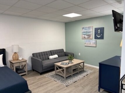 Easy location to find as we are right on Frankfort Hwy. 3 miles from downtown Frankfort and Lake Michigan, only a 8 minute walk from Crystal Lake. Enjoy bicycle riding we are less than a mile from the paved bike path/rails to trails, 15 miles from Crystal Mnt. Entering your cabin you will enjoy a new memory foam, queen-sized bed in a private studio cabin. Featuring a kitchen, bathroom, air conditioning, and free fast wifi! Clean bed linens, towels, pots/pans, dishes/utensils provided.