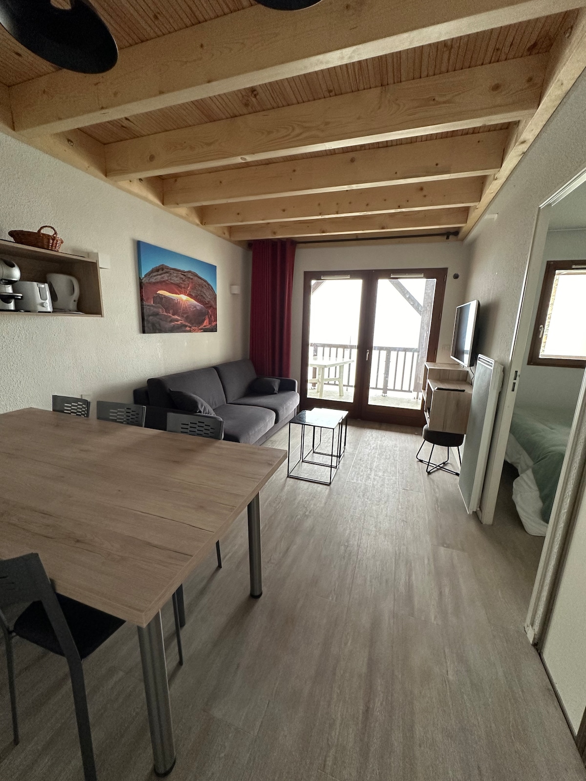 Vous êtes amoureux de la nature, du sport ou de la montagne... Vous aimez vous détendre dans un intérieur chaleureux, pratique et déco... Vous appréciez les moments de partage, de convivialité... Cet appartement peut vous plaire! Au quatrième étage avec ascenseur, avec salon ( canapé convertible et chauffeuse, TV, bac de jeux), cuisine, chambre avec lit double (+ lit parapluie), salle de bain, WC, balcon couvert avec espace déjeuner extérieur, local à skis. A noter : Linge de lit à prévoir.