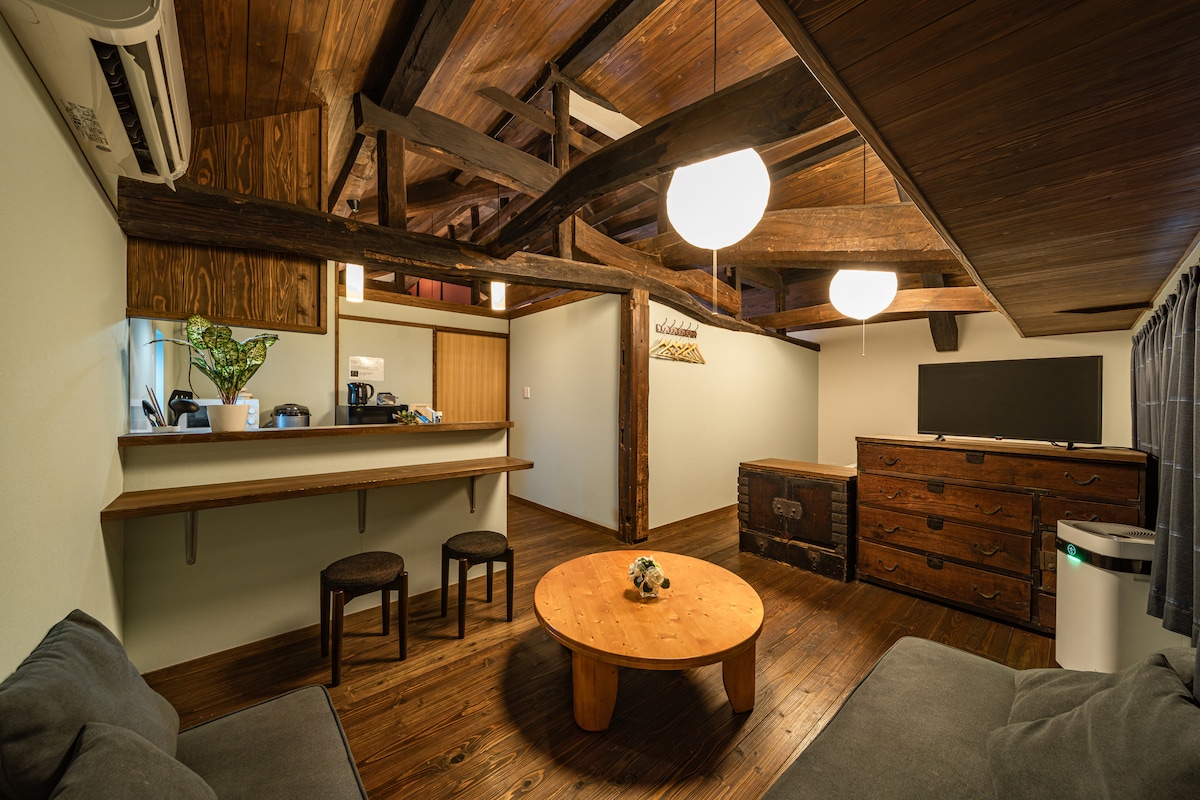 新开业新建别墅53㎡/步行3分钟即可抵达车站和温泉/带阁楼的卧室/毗邻免费P最多5人