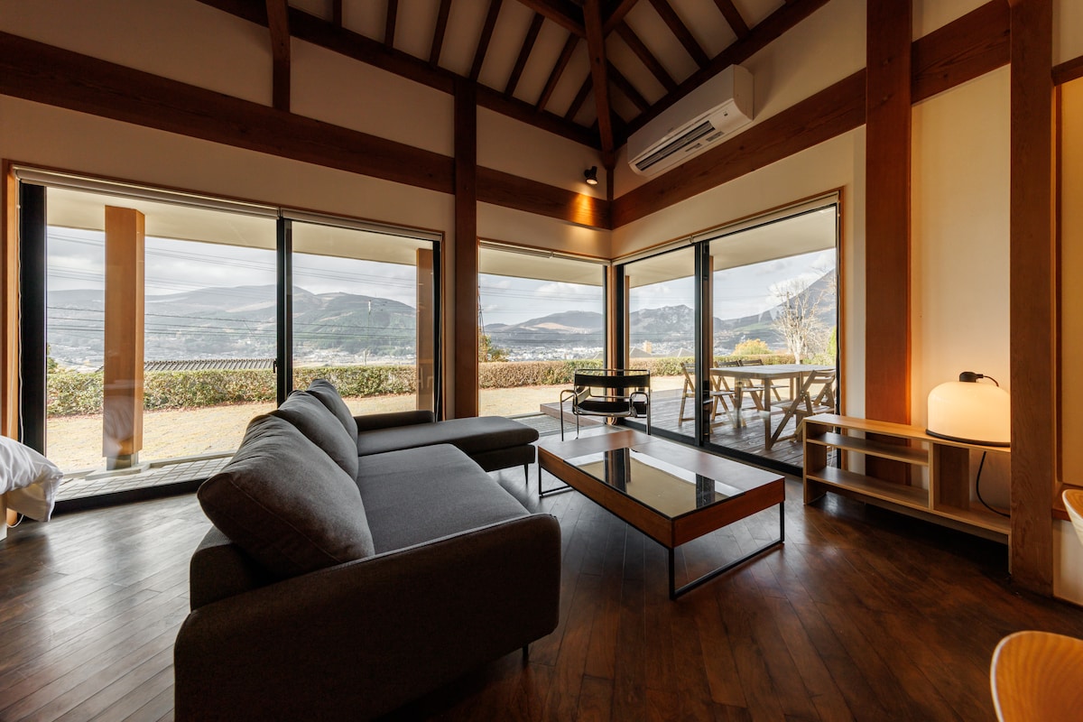 湯布院の一棟貸し|広い庭と源泉かけ流し温泉の絶景ヴィラ|LENTO