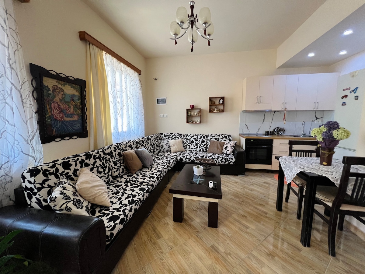 Welcome to your home away from home in Berat, Albania known as the “City of One Over One Windows”. This stylish, fully furnished apartment is located in a two-story villa near Deshmoret e Kombit Park and Gorica Bridge. It features a spacious living room with sofa bed, a modern bedroom with a queen bed, a fully equipped kitchen, private balcony, shared terrace with grill, and washing machine. Perfect for small groups, couples or families exploring historic Berat. We can’t wait to host you.