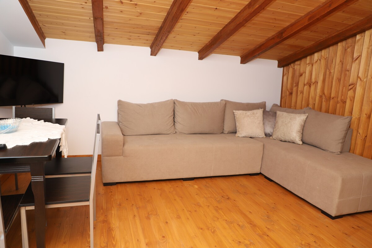 Have fun with the whole family at this stylish place. Brami Apartment: a cozy one-bedroom retreat with a spacious living room, ideal for families and friends alike. Conveniently situated near shops, city buses, and parks, it offers both comfort and accessibility for an enjoyable stay.
