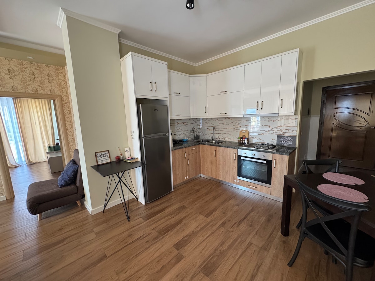 EXCELLENT LOCATION 🌟 Very close to the old city, walkable, Near the quiet, green park with children's playground. With a veranda that gives you a wonderful view of the castel .All facilities are close, mini market, bar and restaurant, car wash ,ATM .bus station, barbershop. Next to the Maira apartment is the Amra Apartment. If you are a group of up to 10 people, you can book both apartments.