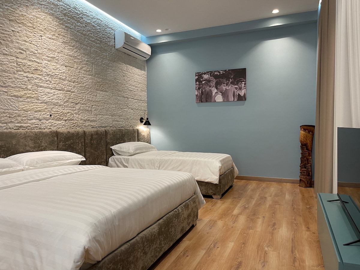 We are a local family passionate about hospitality. Each morning, you’ll enjoy a delicious homemade breakfast prepared with traditional Albanian recipes and 100% organic ingredients, everything fresh, local. Our goal is simple: to make you feel completely at home while discovering the beauty and history of our city. Your comfort, satisfaction, and experience mean everything to us. Twin beds for perfect rest Breakfast included (traditional & bio) Private parking on-site