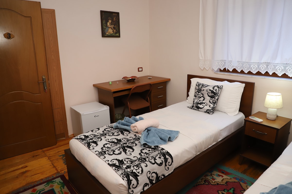 "Discover the epitome of comfort and convenience in our serene abode nestled just a stone's throw away from Berat's enchanting historic center. Perfectly suited for families, friends, and couples alike, our entire house boasts a private yard and parking space, ensuring a tranquil retreat in one of the city's peaceful neighborhoods. Immerse yourself in the rich cultural heritage of Berat, equipped with all amenities necessary for both leisurely relaxation and seamless remote work.