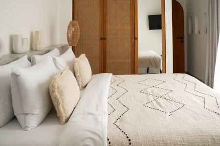 A perfect honeymoon hideaway designed just for two. Our brand new villa offers a romantic atmosphere with modern architecture, ideal for relaxing and reconnecting. Enjoy a cozy bedroom with AC and a 50” 4K TV with Netflix, a beautiful aesthetic bathroom with hot & cold shower, and a comfortable living room with a fully equipped kitchen. A private space to celebrate love and create unforgettable memories together.