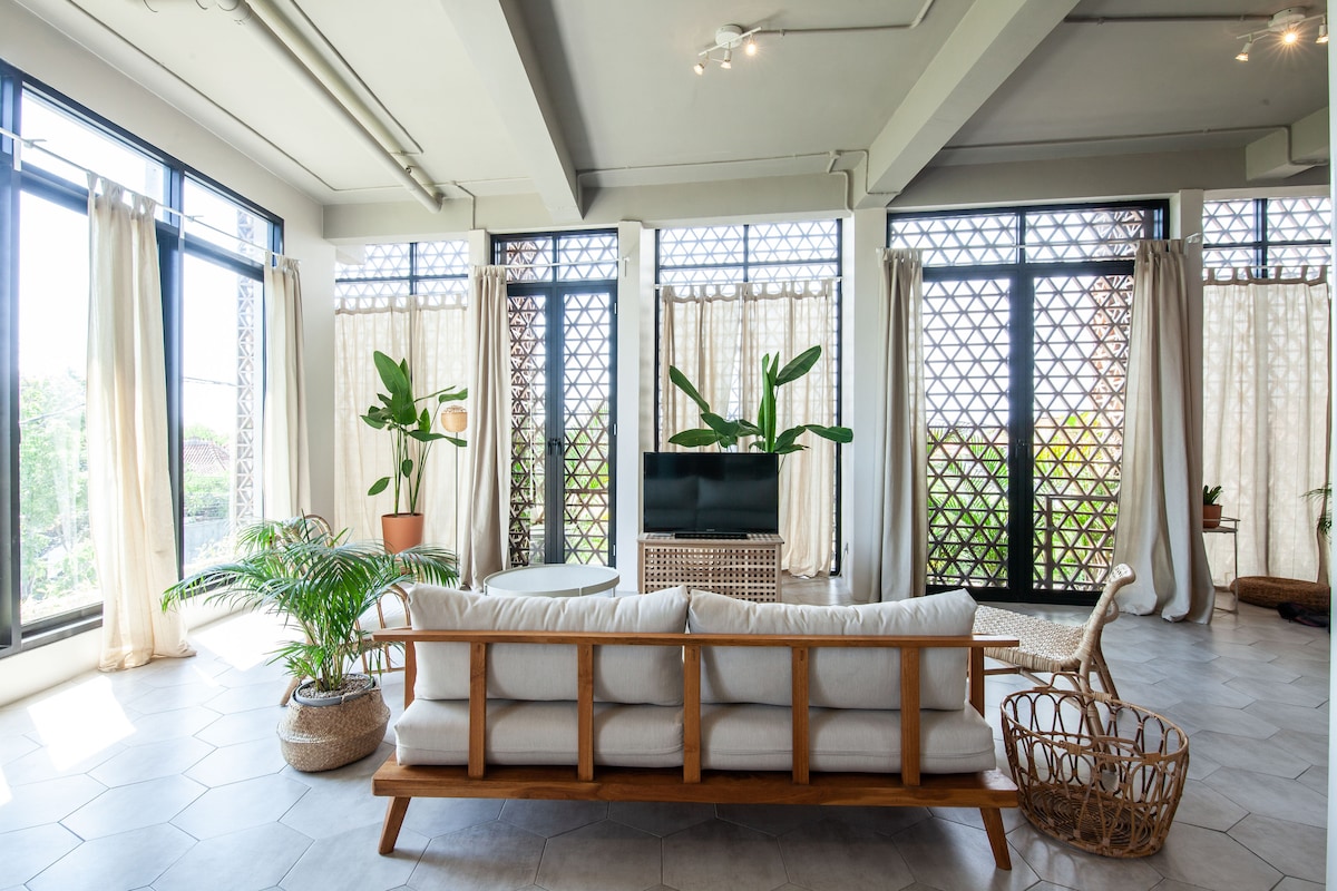 Everyone that has visited has wanted to stay longer. Simple, clean design at this peaceful and centrally-located loft. Newly built, the property consists of 5 loft apartments with a shared pool and a pretty decent garden view. We are across from a rice paddy which adds to the open airy feel of the property. Well-equipped kitchen with well-designed tableware, fluffy towels, and handmade bedding. Come on over.