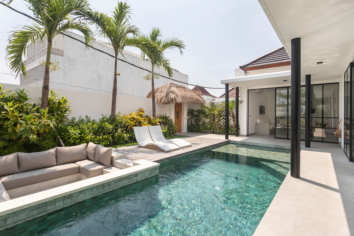 Escape to our Brand New 1 BR villa with private pool in superb location in the heart of Canggu, This is the perfect villa for couples or solo travelers who loves to explore famous spot in Canggu. Just 3-5 walk to great Restaurant, Shop, Gym, CoWorking, Pilates, cafes & Bars. It is just few minutes from famous beaches like Nelayan, Batu Bolong, Canggu Beach, This villa features a luxurious king bed, ensuite bathroom, kitchen, pool, living room, and open living spaces to relax by the private pool
