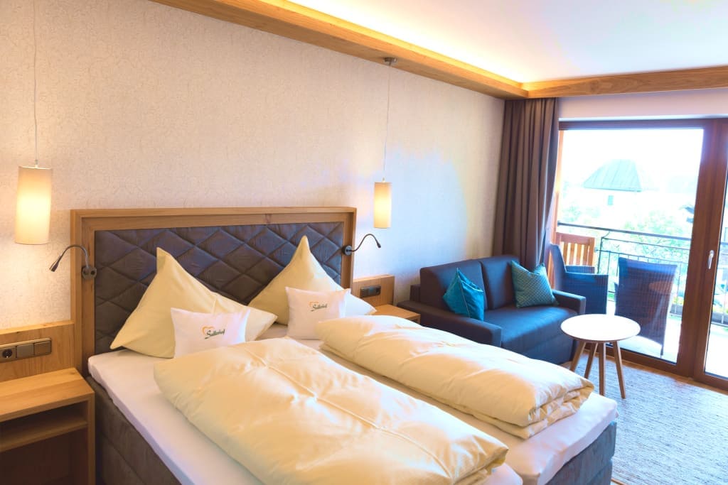 Morning Sun/Forest Side Rooms Wake up to unobstructed views of the Tyrolean mountains or enjoy a peaceful location right on the edge of the forest (fresh forest air). Breakfast with mountain views is always included, our wellness area awaits you for relaxing hours after an active day. In summer, enjoy the heated pool with underwater lighting; in winter, enjoy free entry to the Panorama Bathing World. Whether hiking, skiing or simply doing nothing – here, your holiday will immediately feel right.