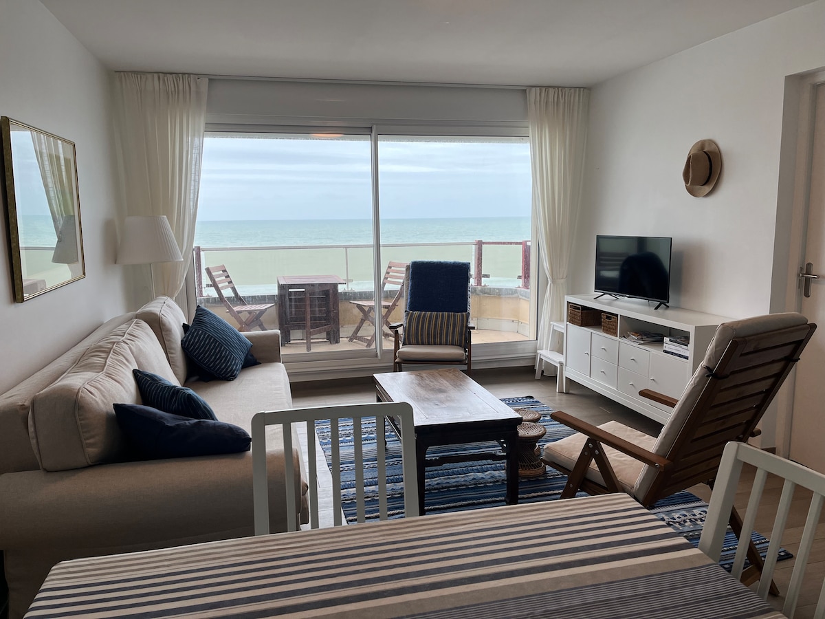 Appartement cosy face à la mer, entièrement refait à neuf en 2021. Wifi inclus. Cuisine équipée avec four, plaque induction, véritable réfrigérateur, et d’une belle salle de vie avec TV 80cm Full HD, canapé lit, une belle chambre avec lit 160x200cm et grand dressing. Également 1petite chambre avec lit de 90. Salle de bains avec douche et vasque. Vue imprenable sur la plage et la mer pour des moments inoubliables et apaisants Accès avec vos codes à Netflix Petit parking derrière la résidence