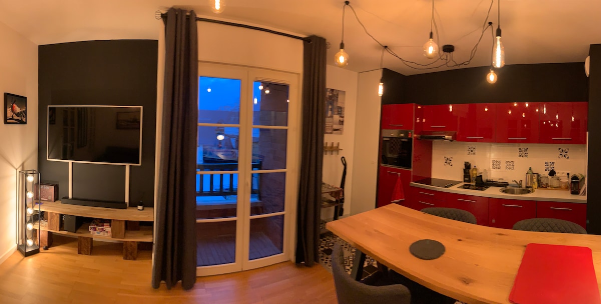 Découvrez la Côte d'Opale depuis notre très bel appartement cosy/chic avec une décoration chaleureuse et élégante. Meublé de tourisme classé 3*. Non fumeur. Emplacement central, restaurants, commerces en bas de l'immeuble, plage à 3 minutes à pied. 3 pièces de 48m2. Très lumineux et ensoleillé. Belle pièce de vie avec salon et cuisine toute équipée avec ilot, 2 chambres dont 1 chambre cabine, 5 vrais couchages, 1 salle d'eau. Wifi et TV. 30€ par animal et par séjour. Pas d'arrivée autonome.