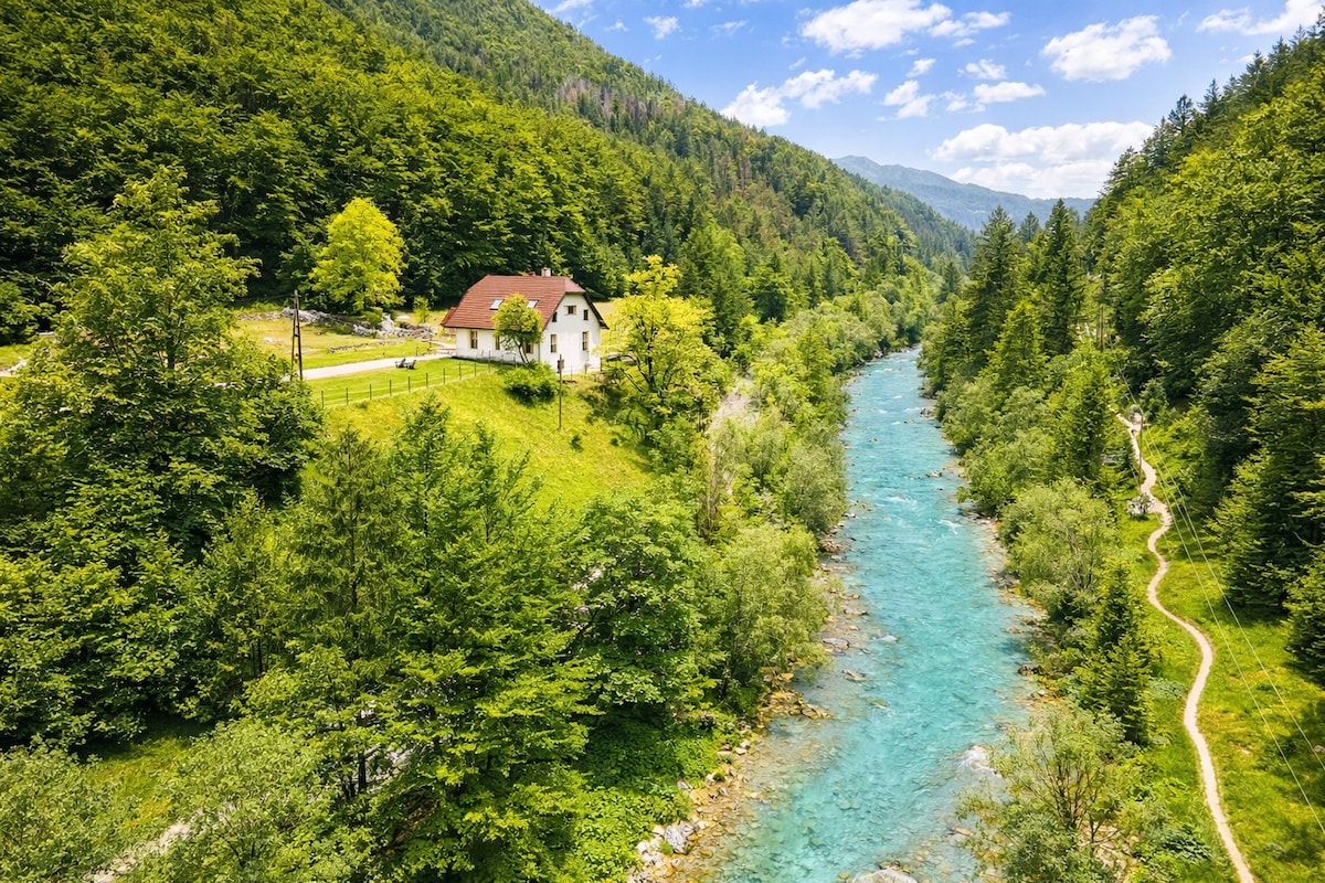 Charming cottage with amazing views in the centre of Triglav National Park. A great place to get away from busy city life. With a secluded location and beautiful views you can truly relax or take a scenic hike. The cottage is walking distance to Soča river source, Alpe Adria Trail, Julius Kugy monument and other hiking trails. The perfect getaway for anyone in search of an adventure. Accessible by car and family friendly. Fully equipped kitchen, full bath, heating and cozy fireplace.