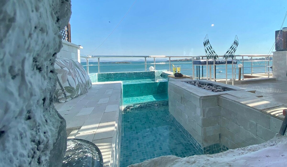 Kumsalda yer alan ve XL Jakuzi, firepit, sinema, şömine , salıncak , barbekü ve çok sayıda lux olanaklarla donatılmış bu eşsiz daire sizi bekliyor. Dairede 2 büyük teras, banyo ve mini mutfak bulunmaktadır. Daire 3. katta bulunmakta ve kullanımı yalnızca size ait asansörle giriş sağlanmaktadır.Binadan bağımsız giriş ve özel kullanım alanlarına sahiptir.
