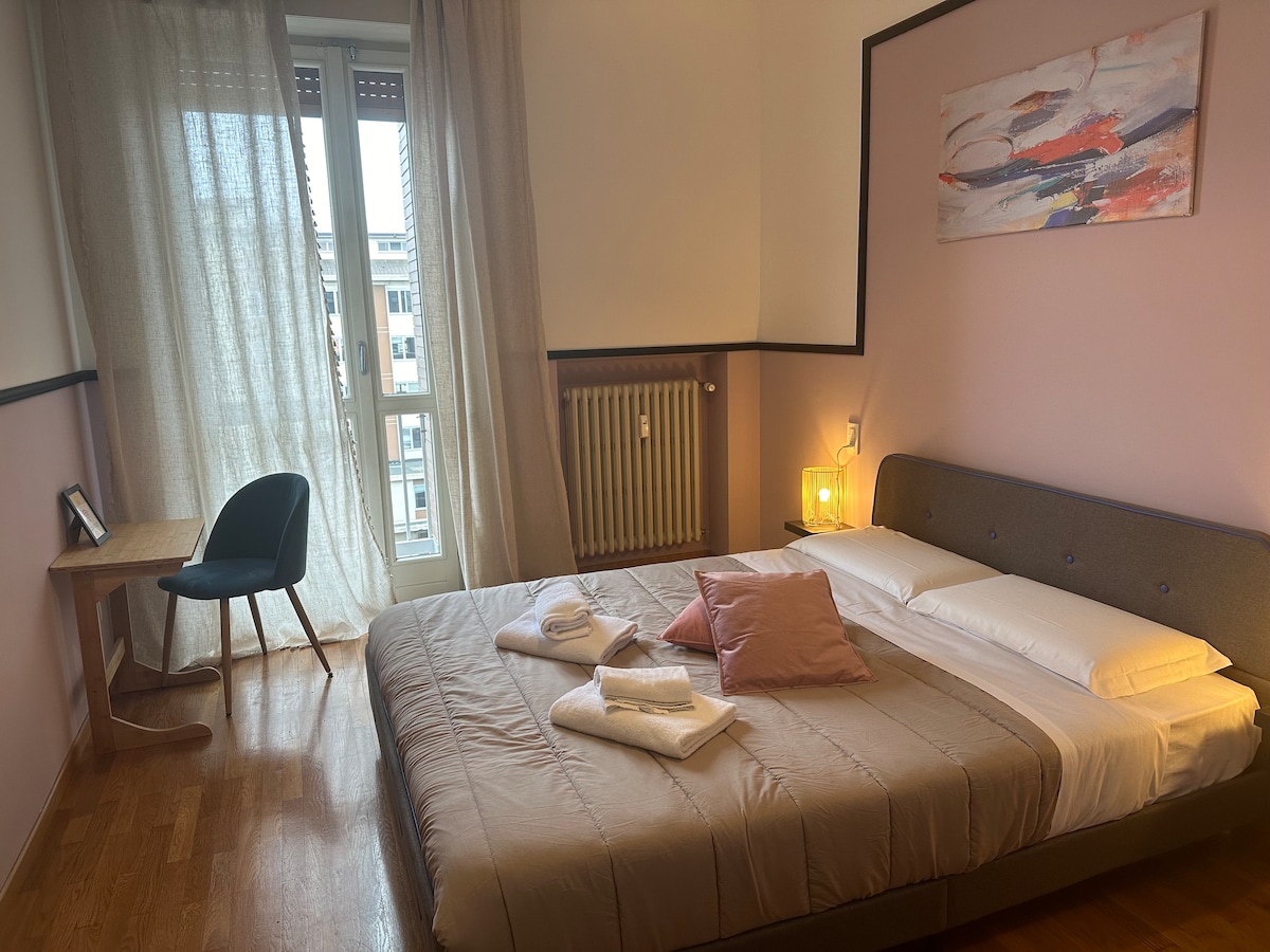 Camera matrimoniale o doppia con letti singoli + poltrona letto aggiuntiva, bagno privato e porta finestra con affaccio su terrazza esterna. Accanto alla metropolitana Turro MM1 e all'Ospedale San Raffaele. Zona molto tranquilla a 10 minuti di metropolitana dal Duomo. Garage accanto alla struttura al costo di 10 euro aperto 24 ore.