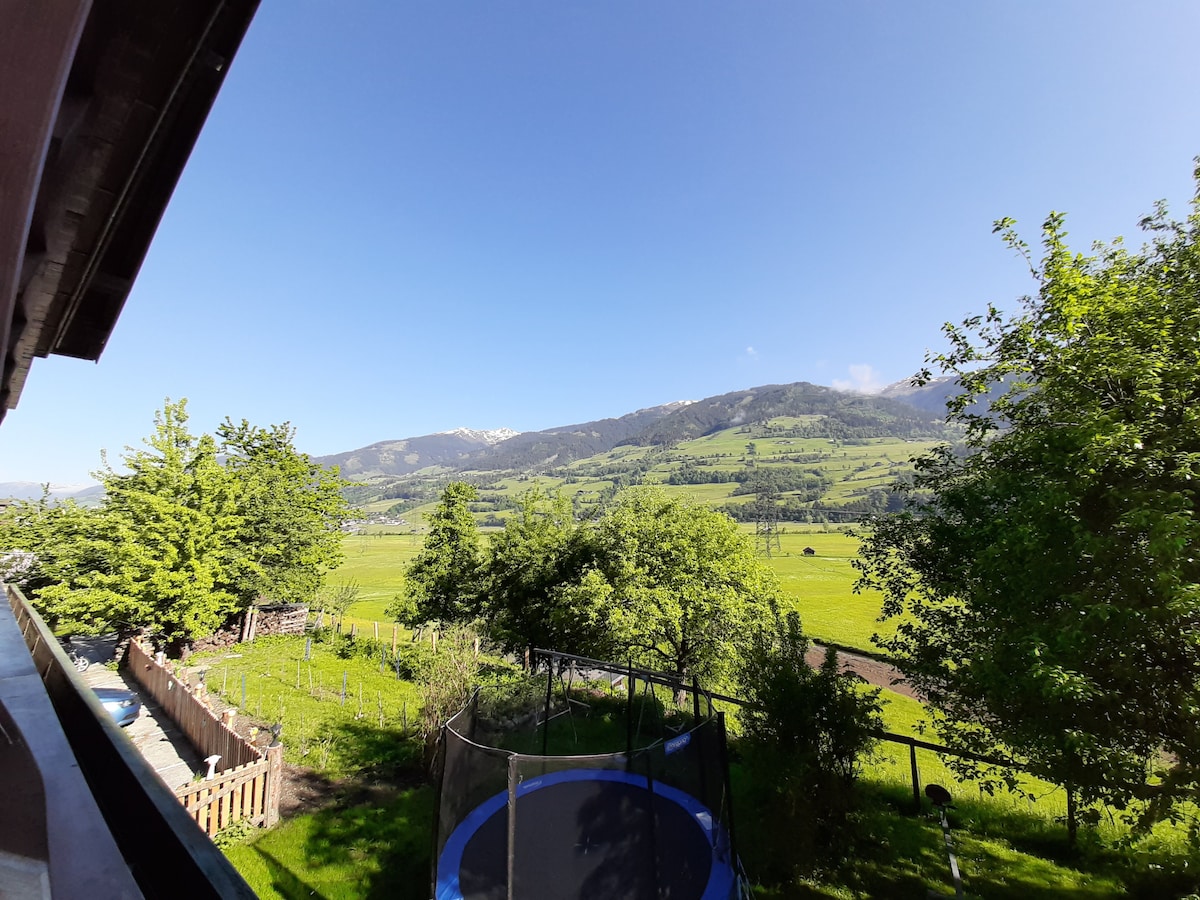 Situated on the outskirts of a Tyrolian mountain village this place offers you a wonderful-broad view. The apartment, lovingly combining tradition and modernity will let you calm down and recharge your batteries instantly. A closeby cable car enables you to all kinds of mountain sports in summer and winter. Yet- even those, who just "stay and relax" will feel at home. WIFI, TV, BT-boxes, parking space are available free of charge; for the Sauna we take a small feey. Kitchen is well equipped .