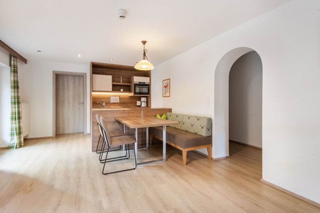 Tiroler Original. 250 Jahre altes behutsam renoviertes Bauernhaus. Schöne, ruhige 42 qm Zweizimmerwohnung in super zentraler Lage. Schön renovierte Wohnung in zentraler Lage in St. Johann in Tirol mit 3.000qm großem Garten. Schlafzimmer mit Doppelbett (160 cm) und Möglichkeit für ein Beistell- oder Babybett. Wohnzimmer mit integrierter vollausgestatteter Küche und gemütlichen Sitzplatz für bis zu 6 Personen. Schlafcouch im Wohnzimmer. Abstellraum. Großes Badezimmer mit WC, Dusche und Fenster.