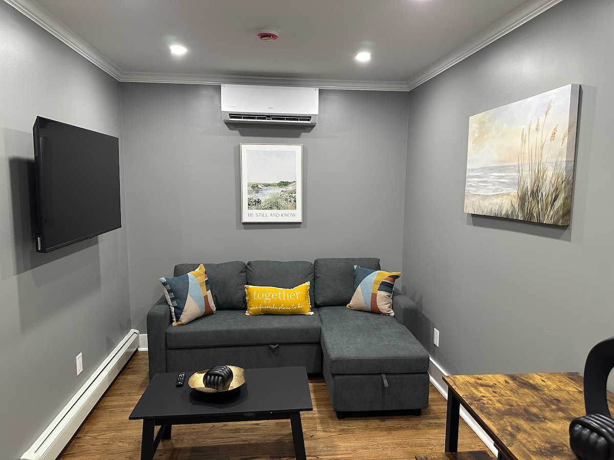 ✨ Brand New Spa-Style Bathroom!! ✨ Newly renovated with a 3-function shower system, heated floors, and dedicated thermostat. In the heart of South Brooklyn. This modern, spacious apt is on a quiet, tree-lined block, steps from dining, shopping, and major transit. Full privacy and easy access. Features & Amenities - Ambient mood lighting - Ample closet space - Heated floors & split units - Firm king bed + comfy pull-out sofa - Full kitchen - On-site washer/dryer - 2 smart TVs