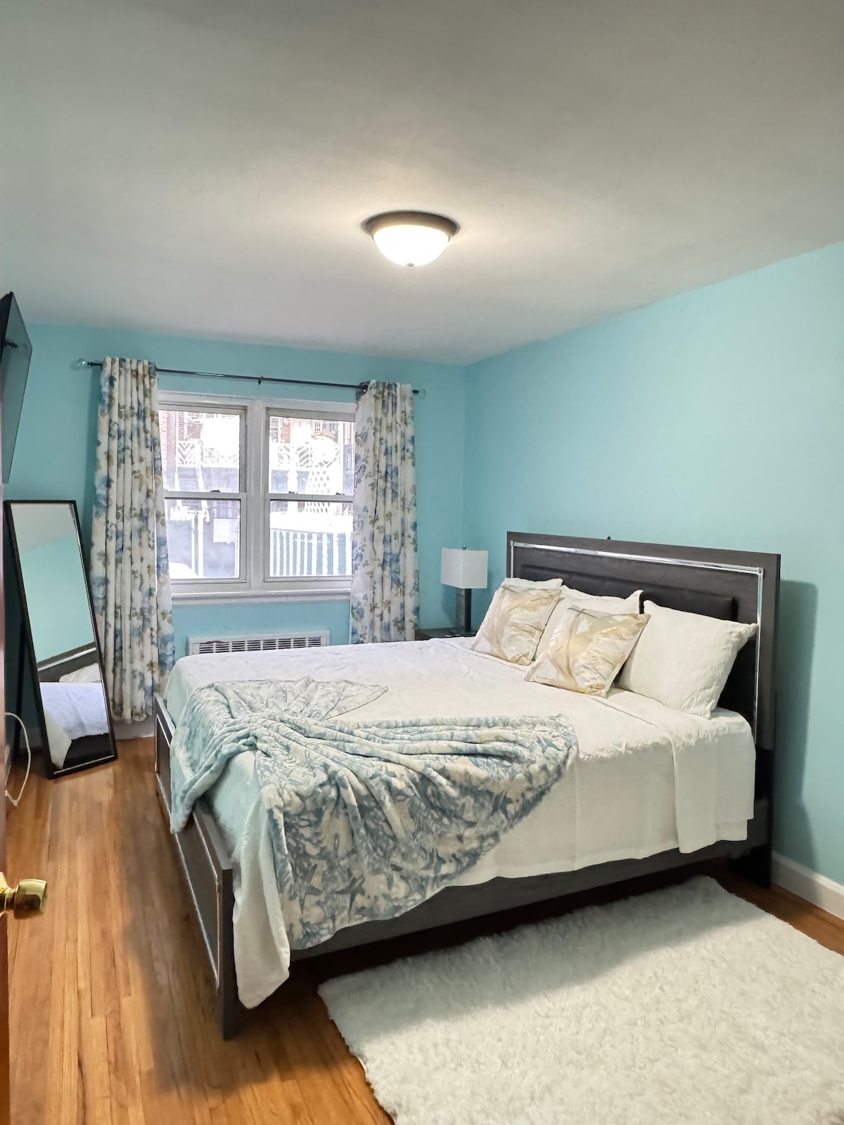 Unwind in this calm, stylish Brooklyn home, just 20 minutes from JFK Airport. Conveniently located, the property offers easy access to transportation, including the L train (45 minutes to Manhattan) and multiple buses (BM2, B6, B82, B103). Explore nearby restaurants and attractions with ease. This private retreat features a queen-size bed, cozy living area with a double bed, fully equipped eat-in kitchen, full bathroom, and a dedicated workspace with a wireless charging port. Book now & enjoy!