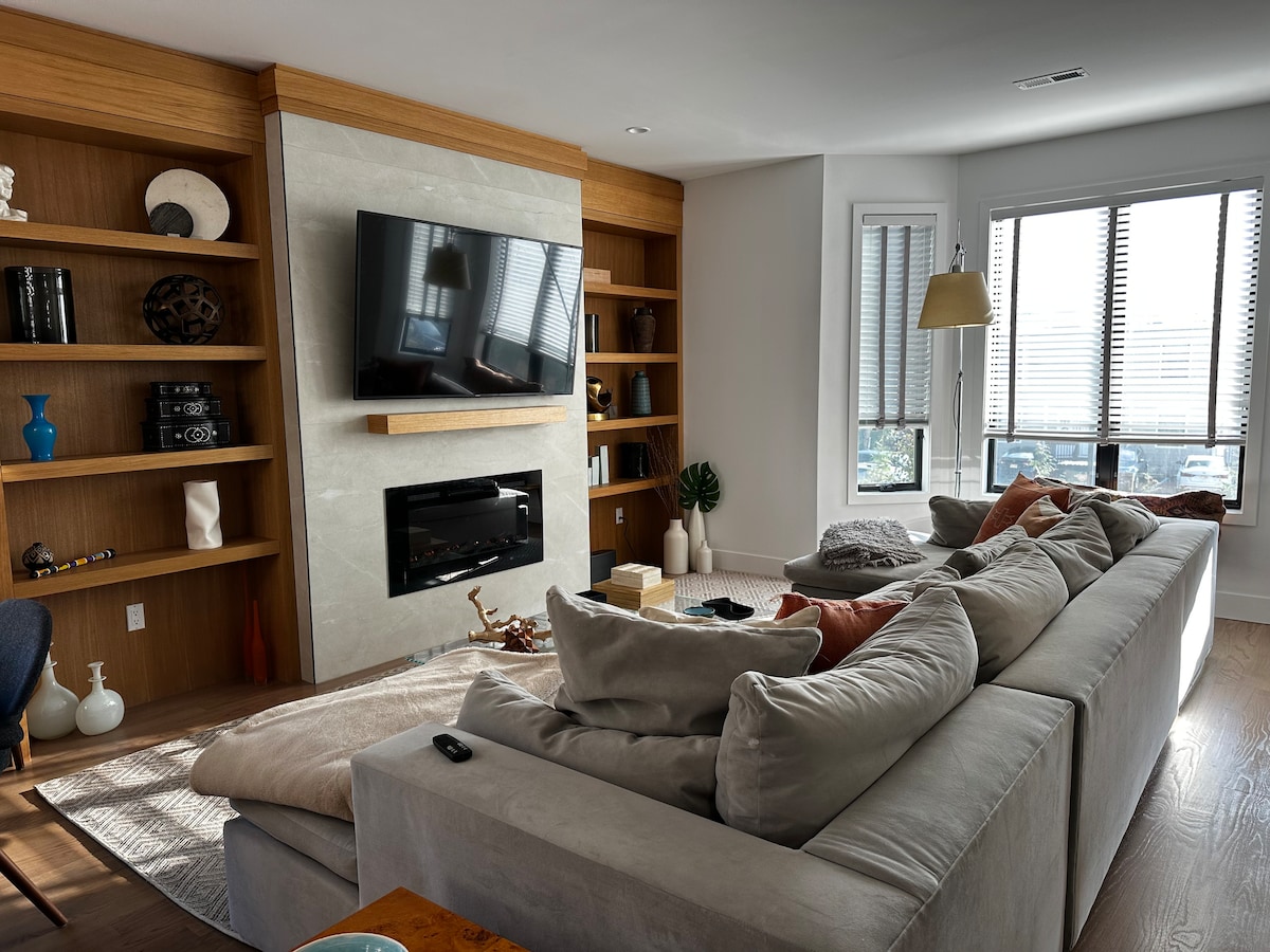 Perfect for quiet getaways, remote work, and easy NYC access. Weekly discounts available. Showcases bold art and KAWS-inspired decor, an LED fireplace, modern sectional, stocked kitchen, in-unit laundry, central AC, WiFi, private parking. Both bathrooms feature walk-in showers, including a private en-suite in the master. Self check-in, private entry. Unlike typical stays, this space blends hotel-level comfort with true home vibes—minutes to NYC, American Dream & MetLife Stadium