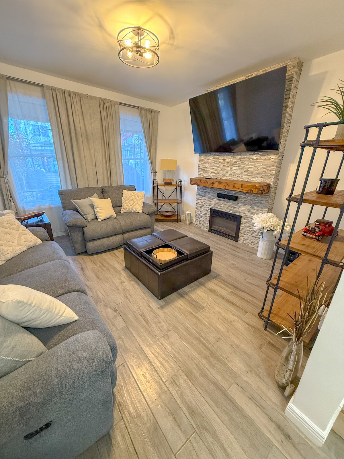 Inspired by a luxurious presidential suite, this thoughtfully designed walkout basement retreat blends upscale finishes with cutting-edge smart features for a truly elevated stay. Experience hotel-style comfort with the privacy of home. Enjoy a fully equipped full-size kitchen, a serene king-size bedroom, spa-inspired bathroom, cozy TV room, and an elegant bar cabinet. The open-concept layout is filled with natural light from full-size windows and offers step-free access to a private backyard.