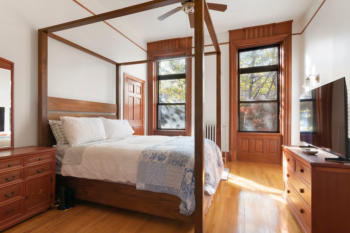 Bright and sunny bedroom in renovated Harlem owner occupied townhouse. The house is steps from 135th Street subway (B and C trains), and 15 minutes to midtown. The bathroom is outside the room, but directly across from it and is only used by the guest staying in this room. Because of NYC regulations, we can only host one person in the room at a time. Please note that although the minimum stay is one night, we typically do not accept one night reservations more than a month in advance.