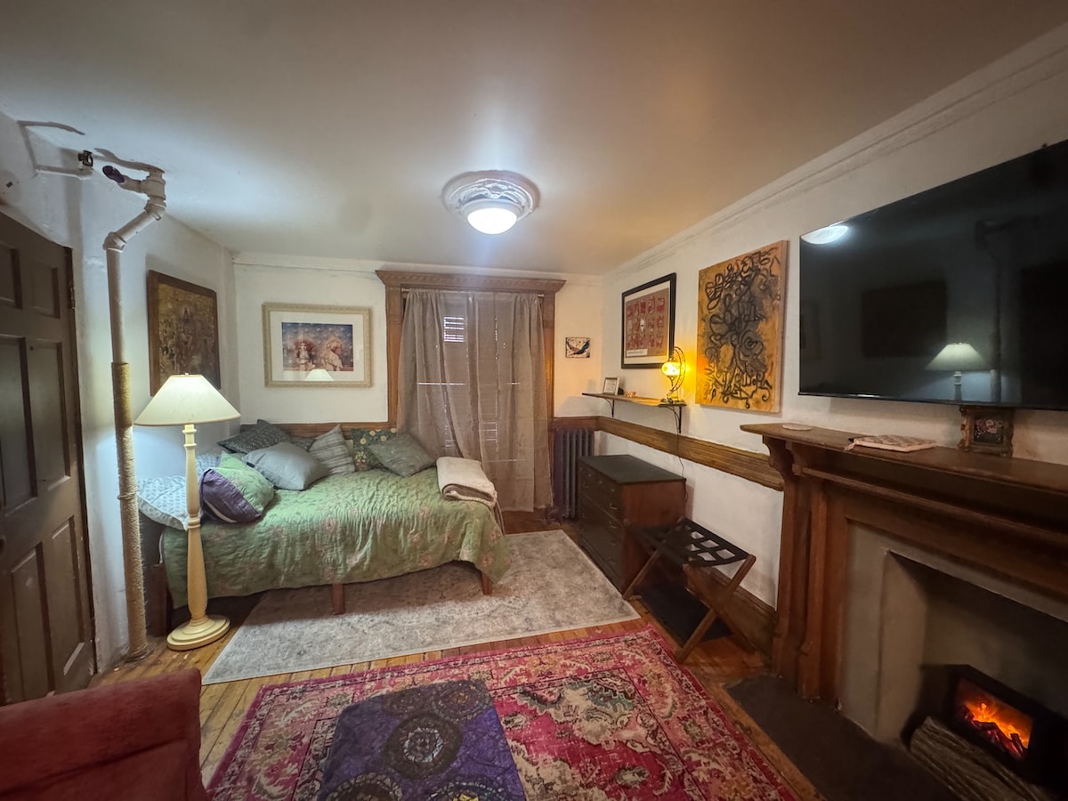 Quiet oversized Bedroom (350sf) in Victorian Mansion located in historic Hamilton Heights, Harlem. 4th floor croissant-shape window over quiet tree-lined block (Convent Avenue). Private door to extra large Bathroom/Jacuzzi. Shared Kitchen on 1st floor. Shared backyard. Hi-Speed WiFi. Flat TV and independent cable box included. Eco-Friendly bathroom essentials provided. * If your trip needs extra days, please ask! even when sold-out. I have other rooms in the house that I can make available.