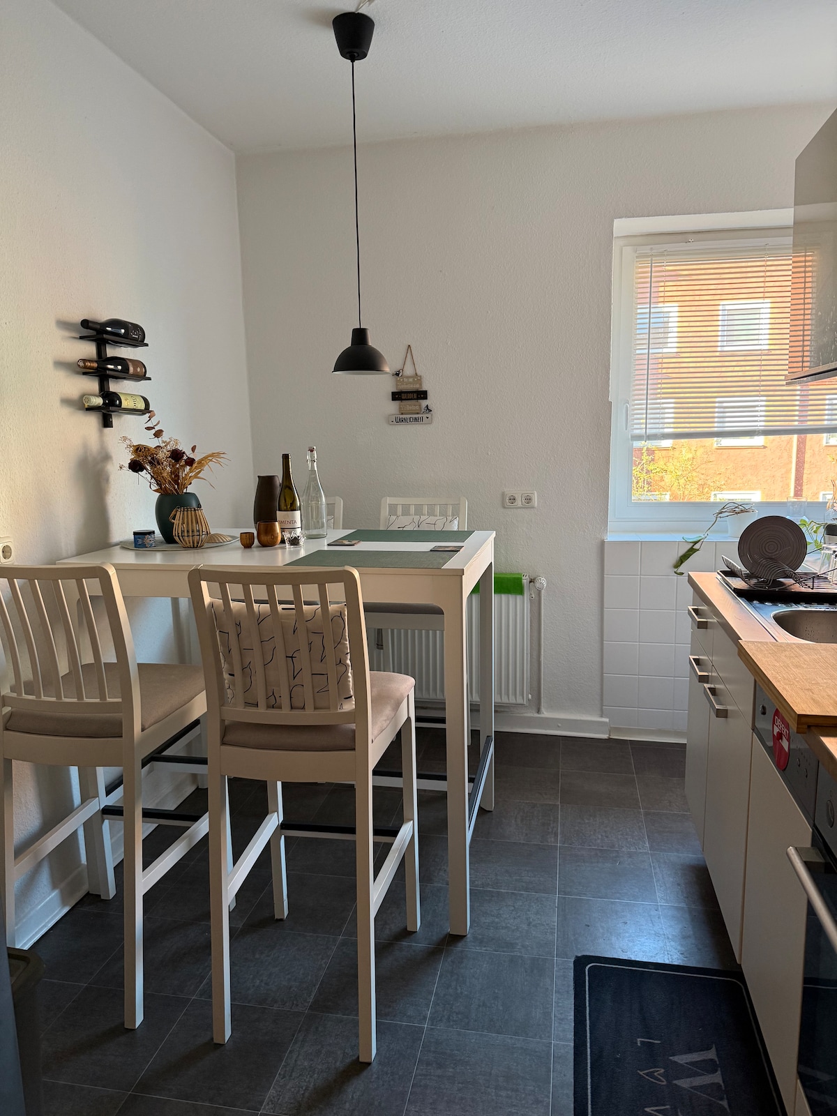 Die 1-Zi-Whg. liegt in der 1. Etage mit separatem Eingang. Fußbodenheizung, el. Rollläden, 3-fach verglaste Fenster, HD-TV, eine voll ausgestattete Küche und einiges mehr, bieten einen angenehmen Aufenthalt. Die max. Personenzahl ist 4, dann allerdings schon etwas eng und nur für einen Kurzaufenthalt geeignet. Optimal ist die Whg. z.B. für 2 Erwachsene mit Kind. Ein Babybett, ein Kinder-Reisebett, sowie ein Kinderhochstuhl kann gegen eine geringe Gebühr bereitgestellt werden (5€ pro Aufenthalt).
