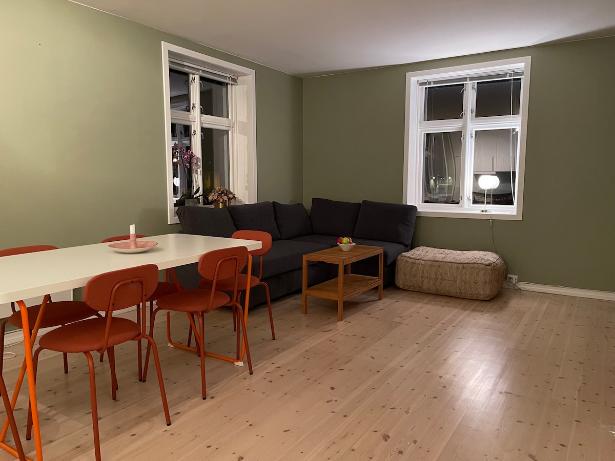 Unique apartment of 100 sq m with maximalist style interior- art. Views of the city and mountains from every window. All shops and city life within a short distance - nearest grocery store 2 minutes away. Kronstad area has both a bakery, restaurants and pharmacy. Right next to Haukeland Hospital and Ulriksbanen. Bergen Light Rail 5 minutes away, or walk to the city center in 20 minutes. Kronstad is a quiet and family-friendly area, with a playground right outside the house.