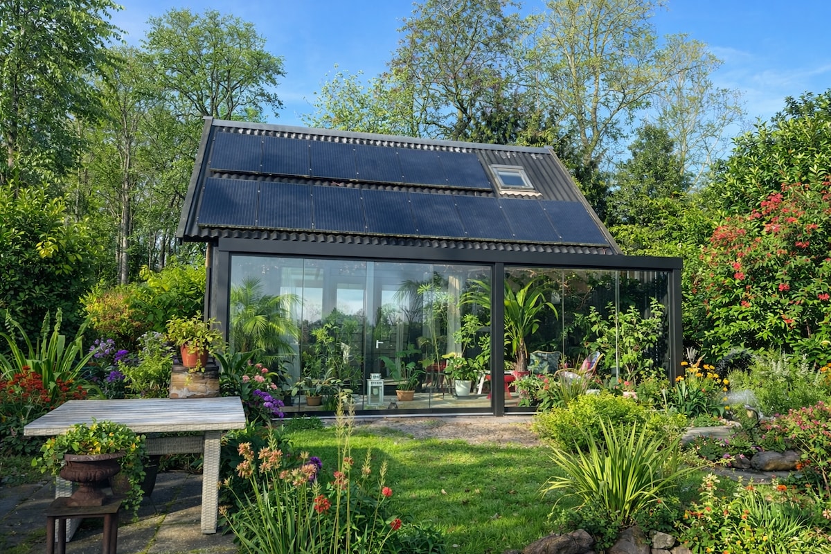 带温室景观的森林小屋,可选私人热水浴缸