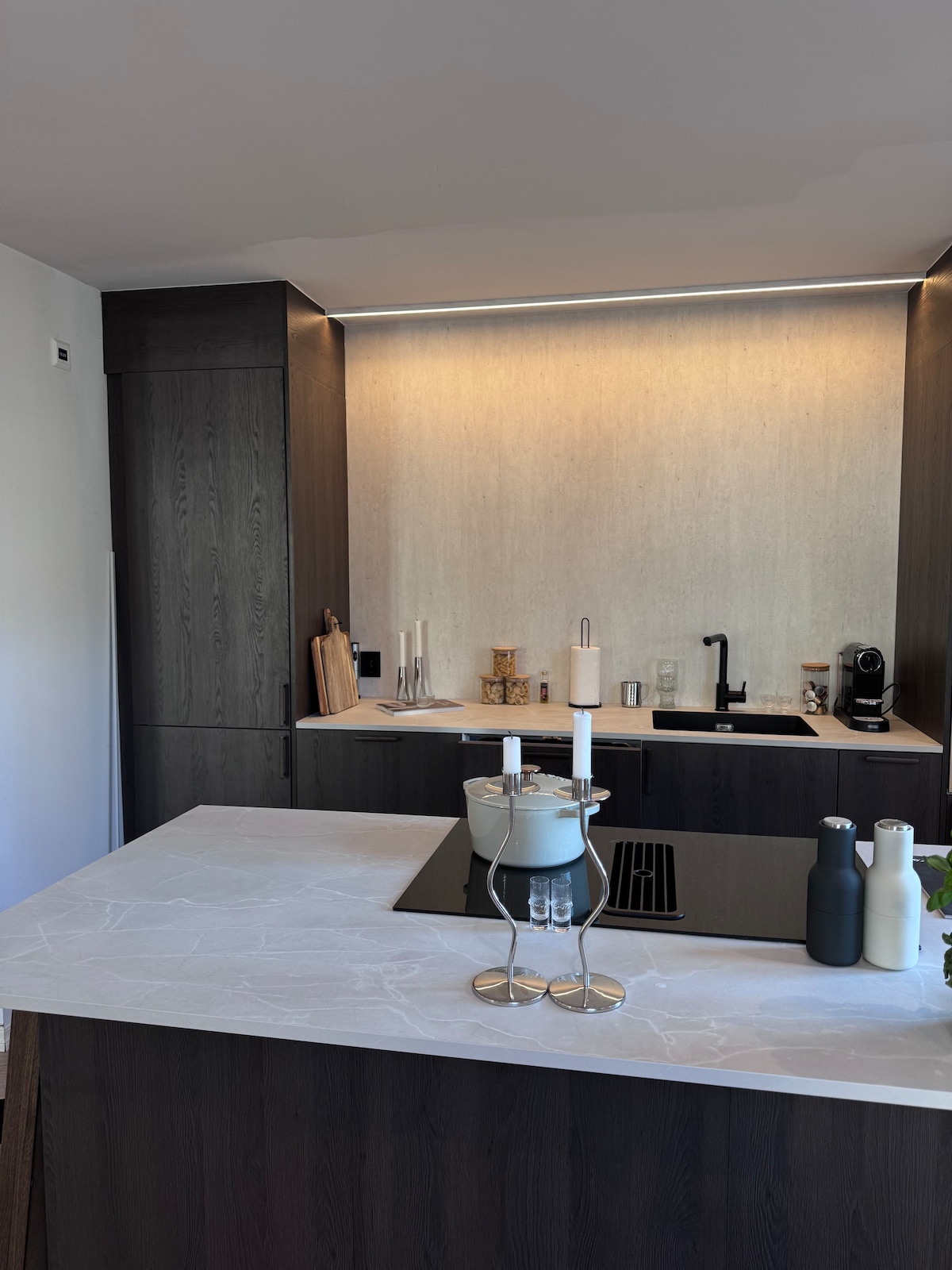 Modern apartment at the Bergen seashores, approximately 10-15 min drive from citycenter. The flat includes living room, kitchen, bedroom, bath/toilet, hall and outside terrasse. New buildt house in 2015 with high standard all over. Double bed in bedroom and also a double sofabed in living room.